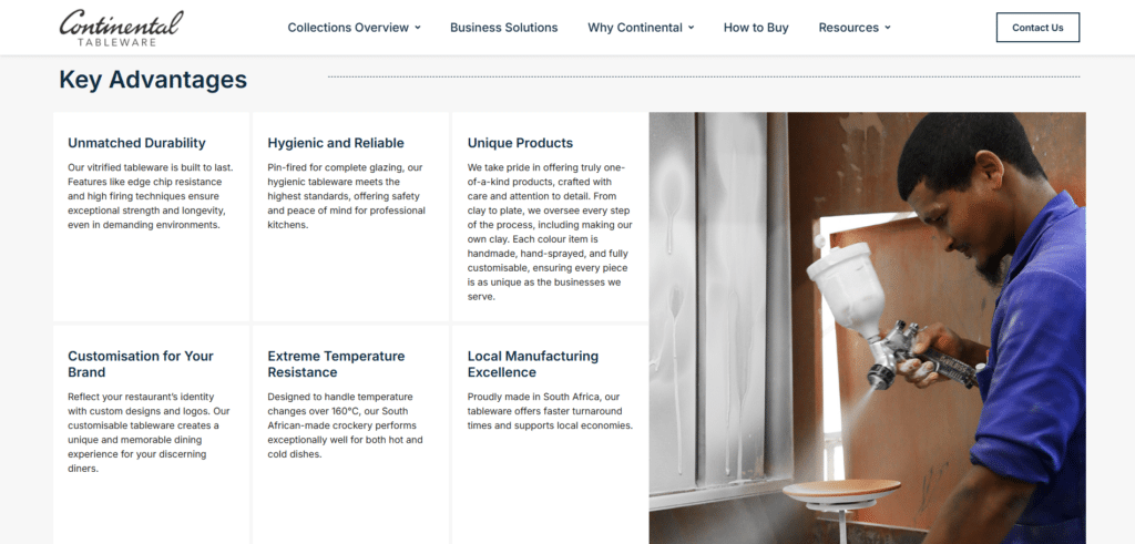 Continental Tableware (formerly Continental China) sought to reposition itself as a proudly South African consumer brand while transitioning from its long-standing B2B identity. The primary objective of Phase 1 was to build an engaging, modern website that would serve as the foundation for a future e-commerce platform. Key goals included increasing brand visibility, showcasing product quality, and building trust with a new consumer audience through an elevated digital presence.
