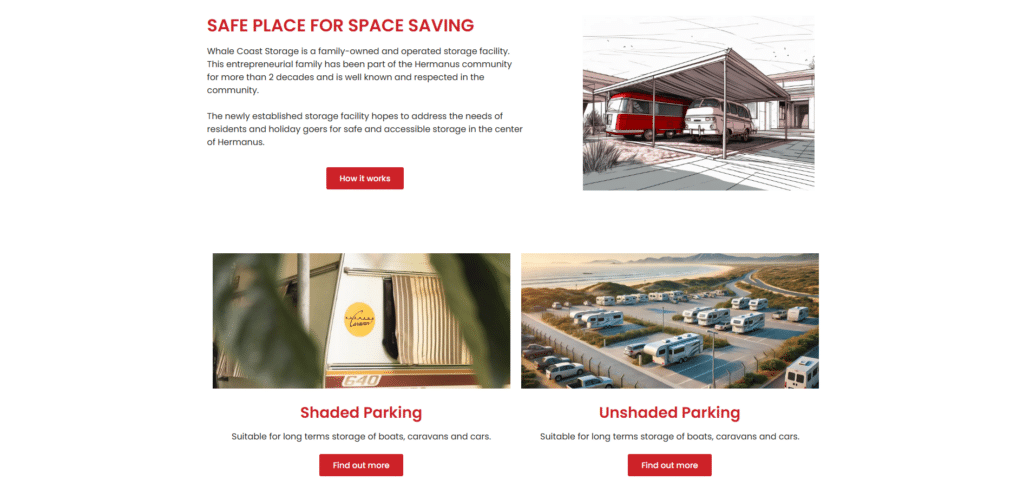 Whale Coast Storage, a locally rooted, family-run business based in Hermanus, South Africa, partnered with our team to establish a strong and professional digital presence. With more than two decades of community involvement, their goal was to position themselves as the go-to storage provider for both locals and holiday-goers in the region.